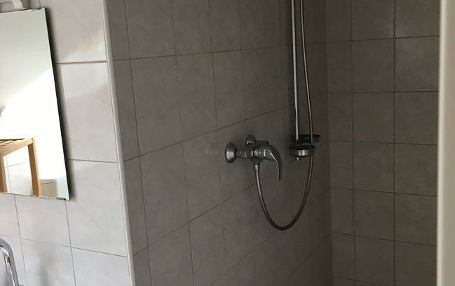 Sanitär: Badezimmer mit Fenster, Dusche, Föhn, Separates WC, Waschbecken