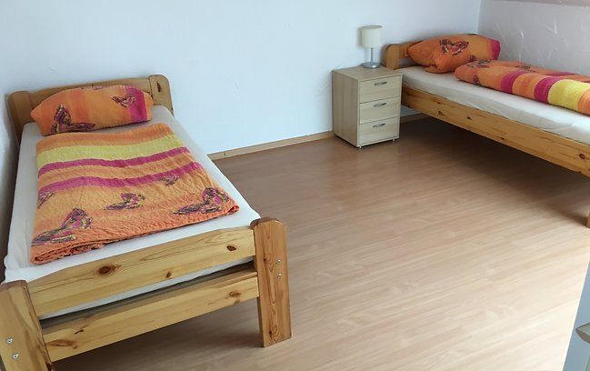 Ferienwohnung "Pferd" hat eine Größe von ca. 75 qm und bietet Platz für bis zu 5 Personen, davon maximal für 4 Erwachsene. Separater Eingang von außen. Die Wohnung befindet sich im 1.Obergeschoss.