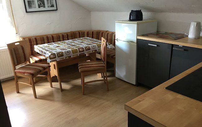 Ferienwohnung "Riedwiesen" im Haupthaus hat eine Größe von über 100 qm und bietet Platz für bis zu 7 Personen, jedoch maximal 6 Erwachsene. Separater Eingang von außen. Die Wohnung befindet sich im 1. OG.